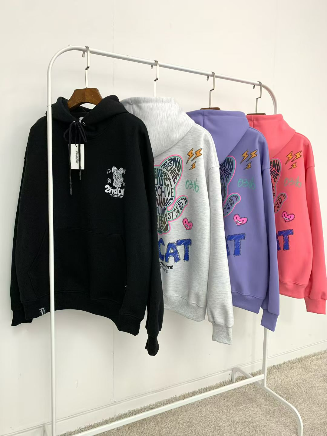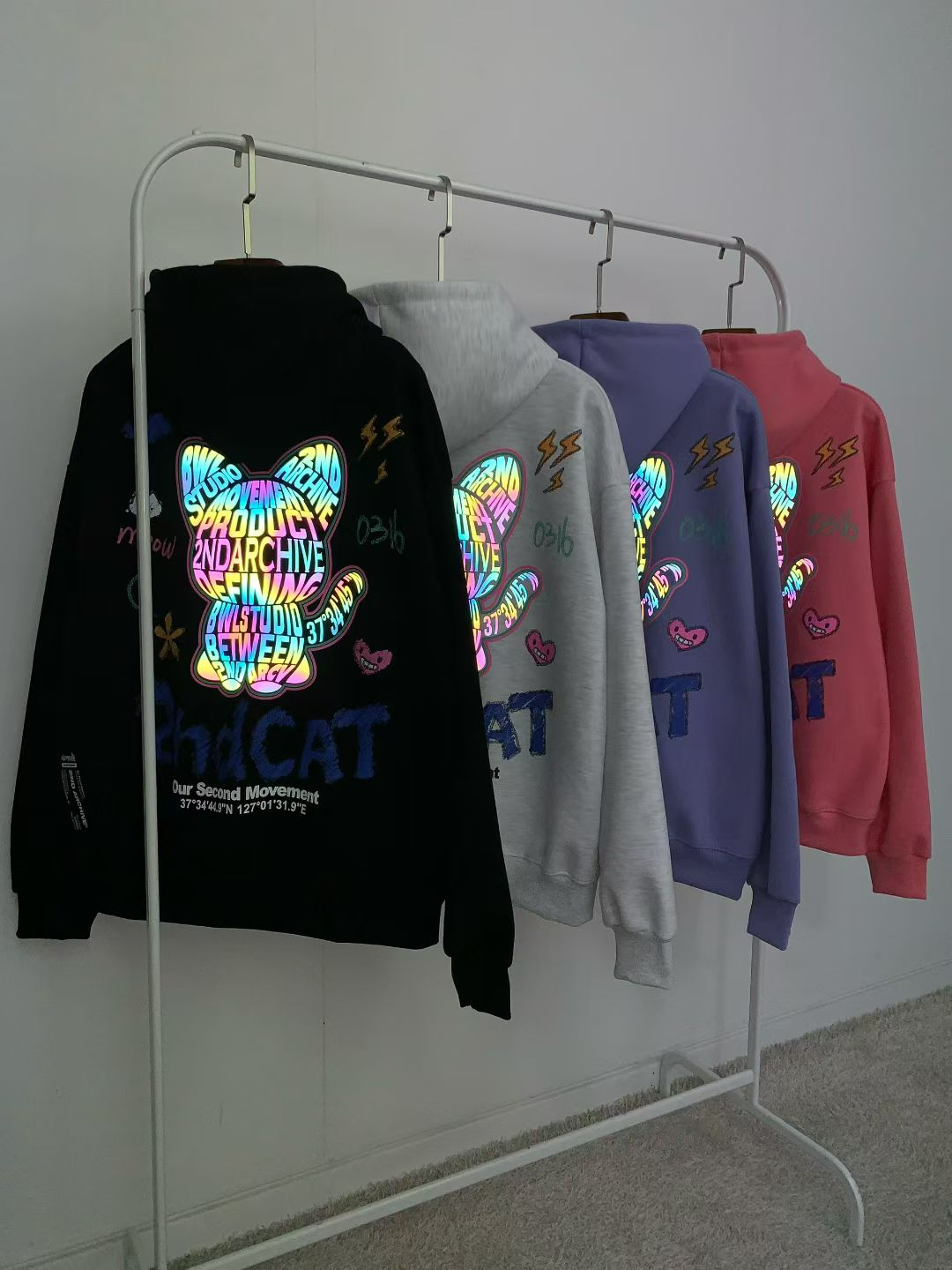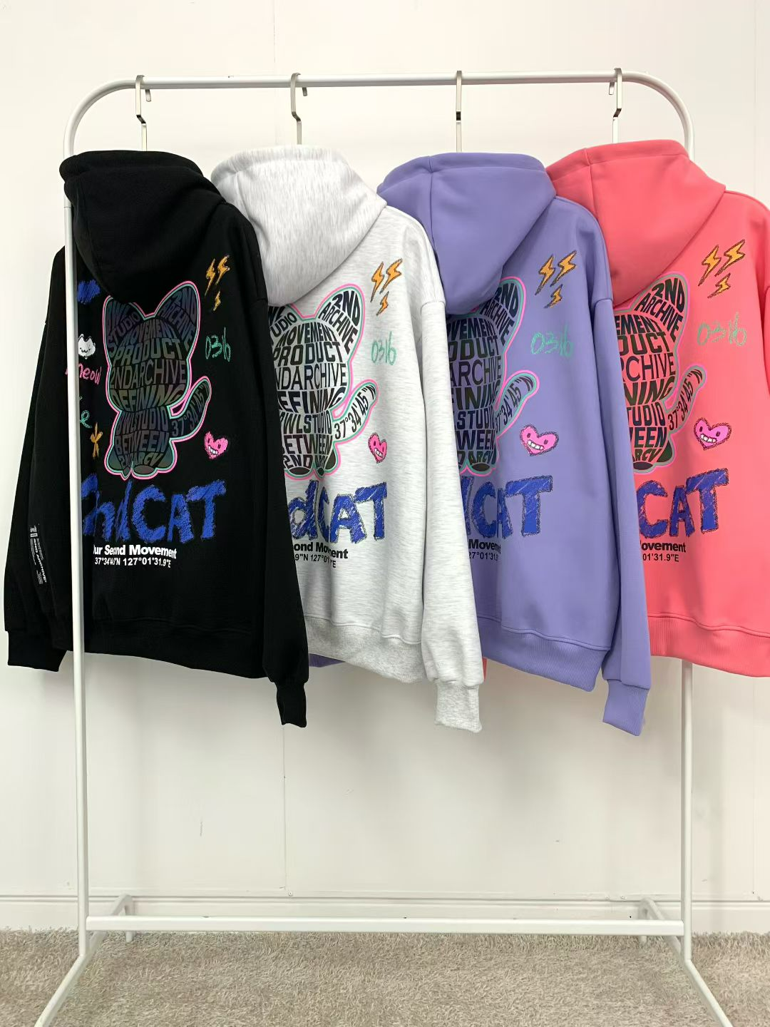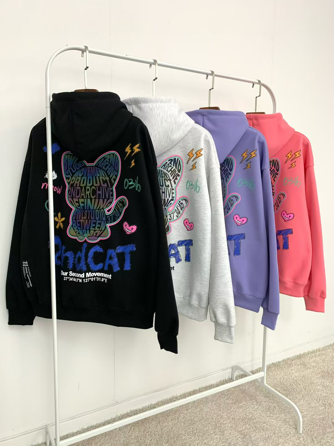 這款來自韓國品牌 2ND ARCHIVE 的貓咪塗鴉連帽衛衣,讓你在人群中一眼被記住!