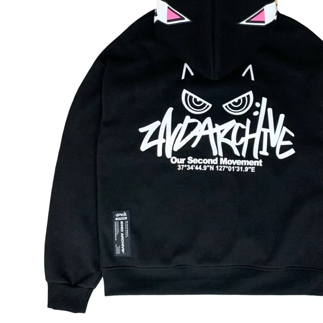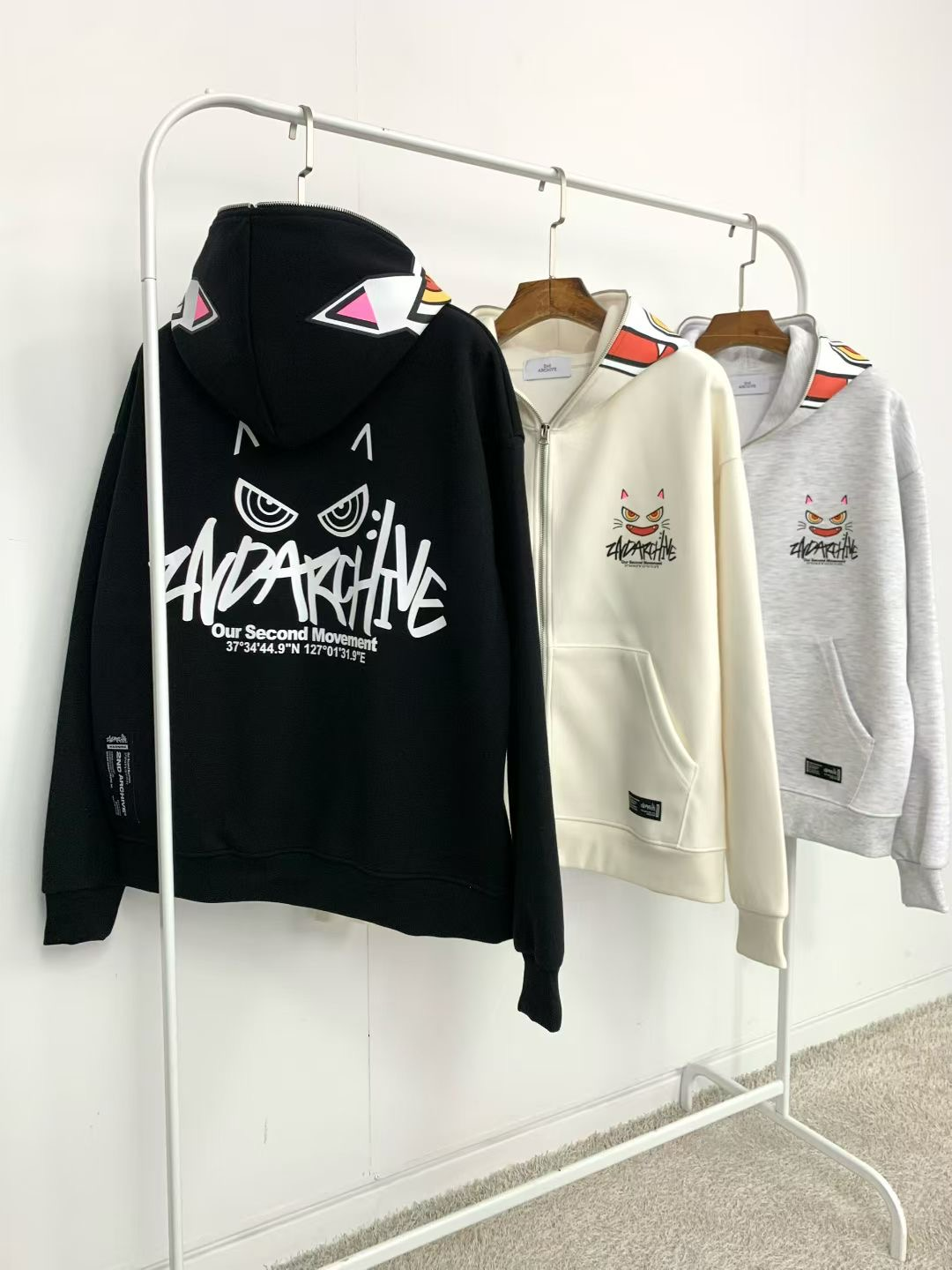 #2ndArchive #連帽外套 #全拉鍊 #韓系潮流 #貓咪外套