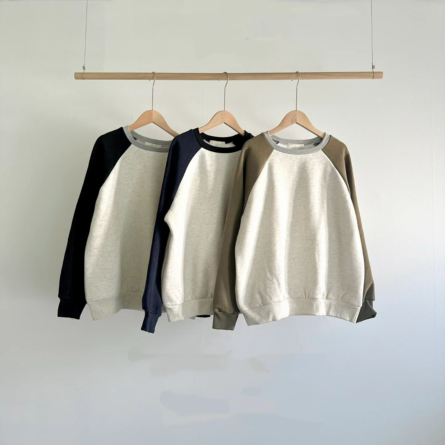 韓國製 Raglan配色大學T|內刷毛kimo保暖|低飽和冷調中性風衛衣