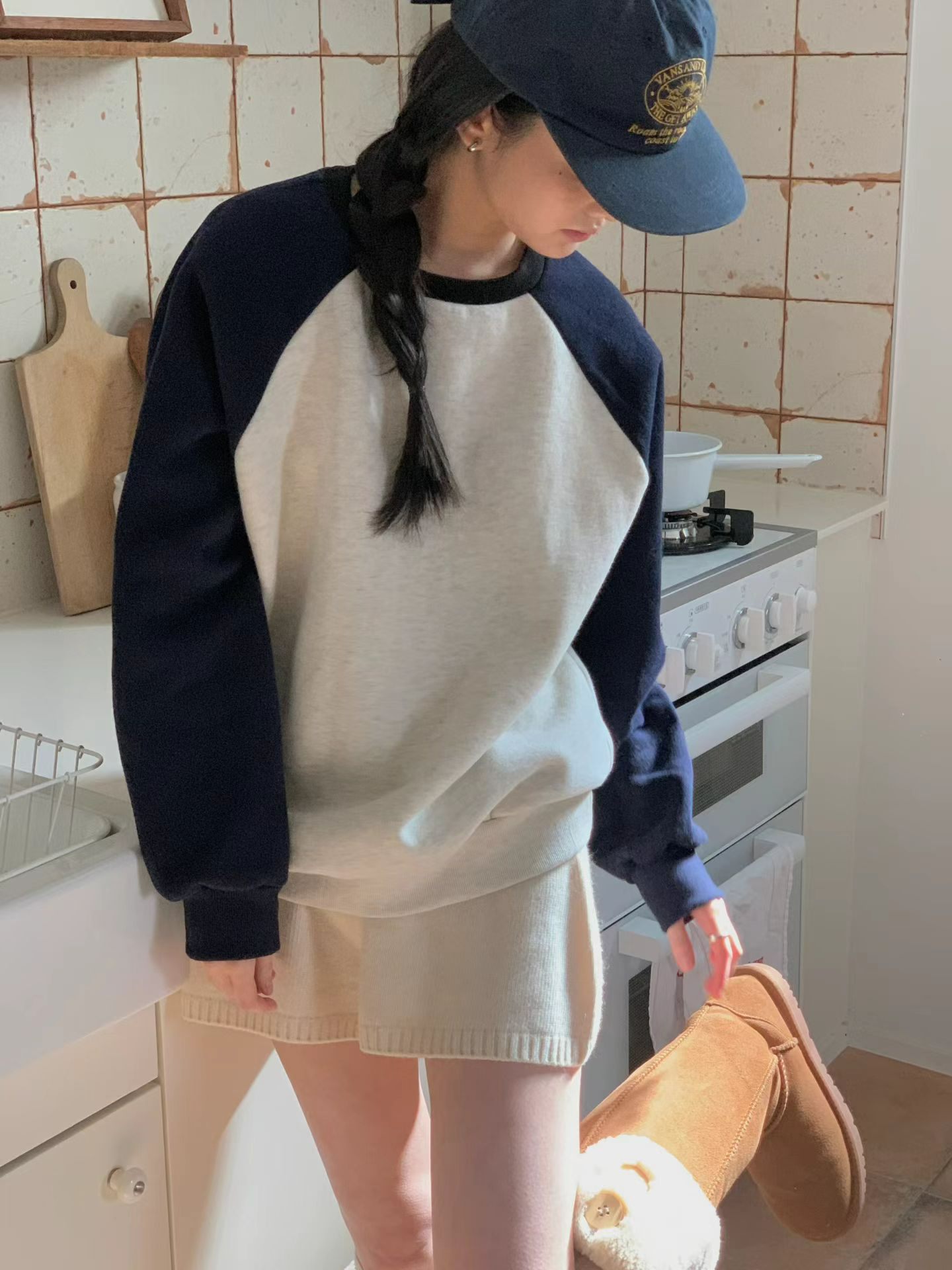 配色撞色 Raglan,軟厚舒服、冬日居家外出都能穿。