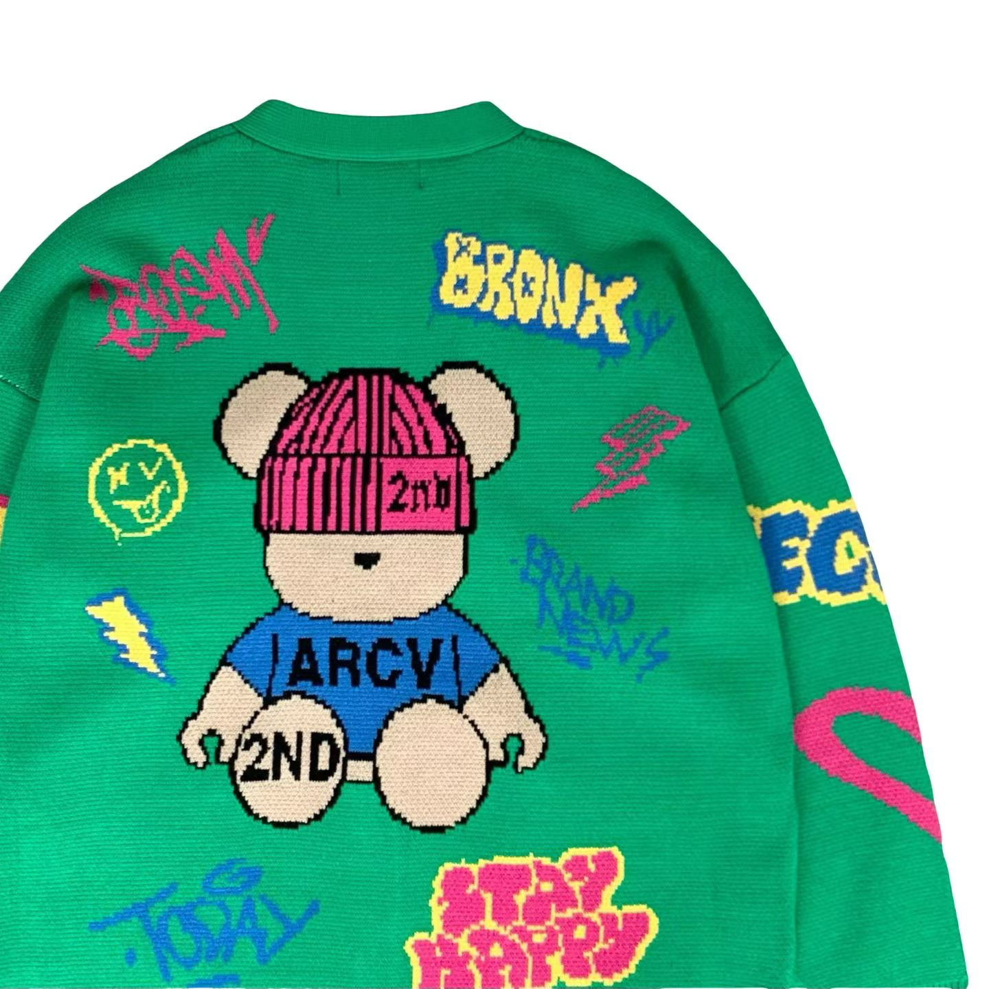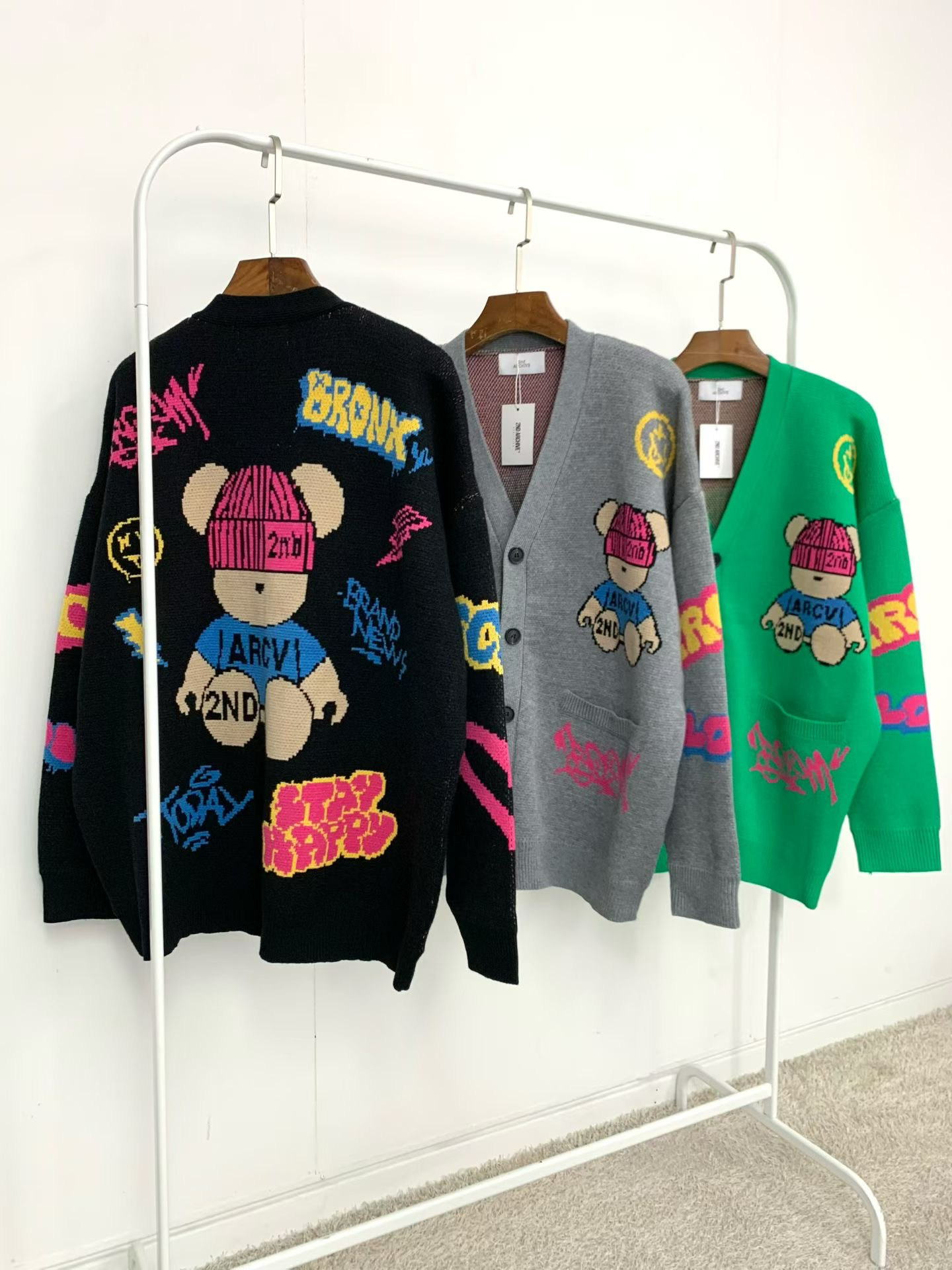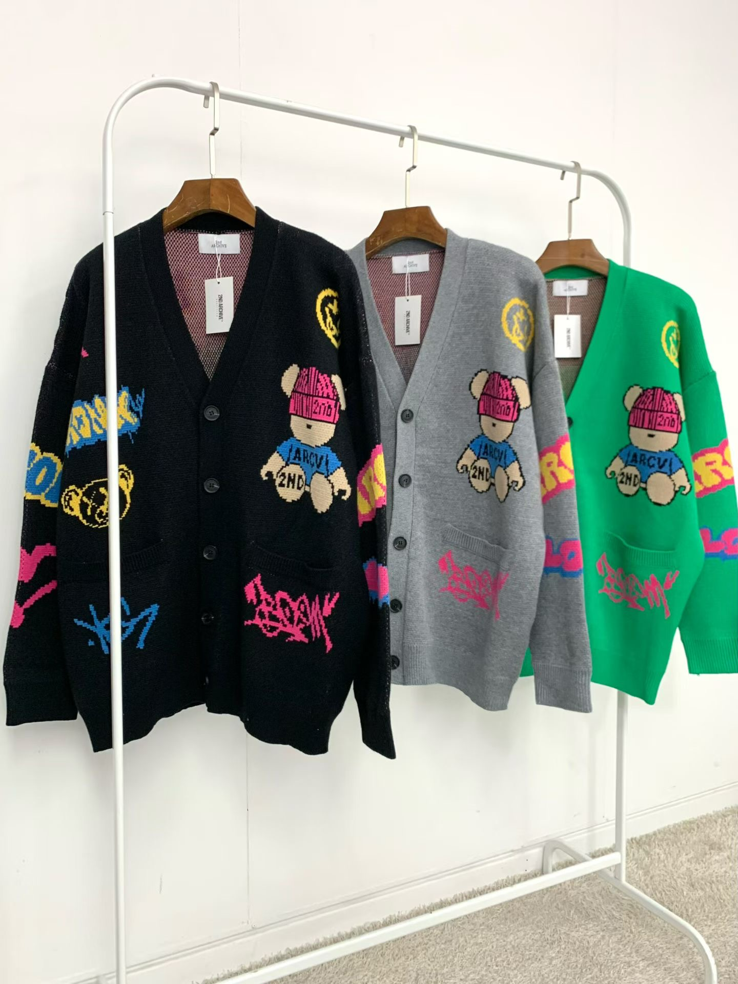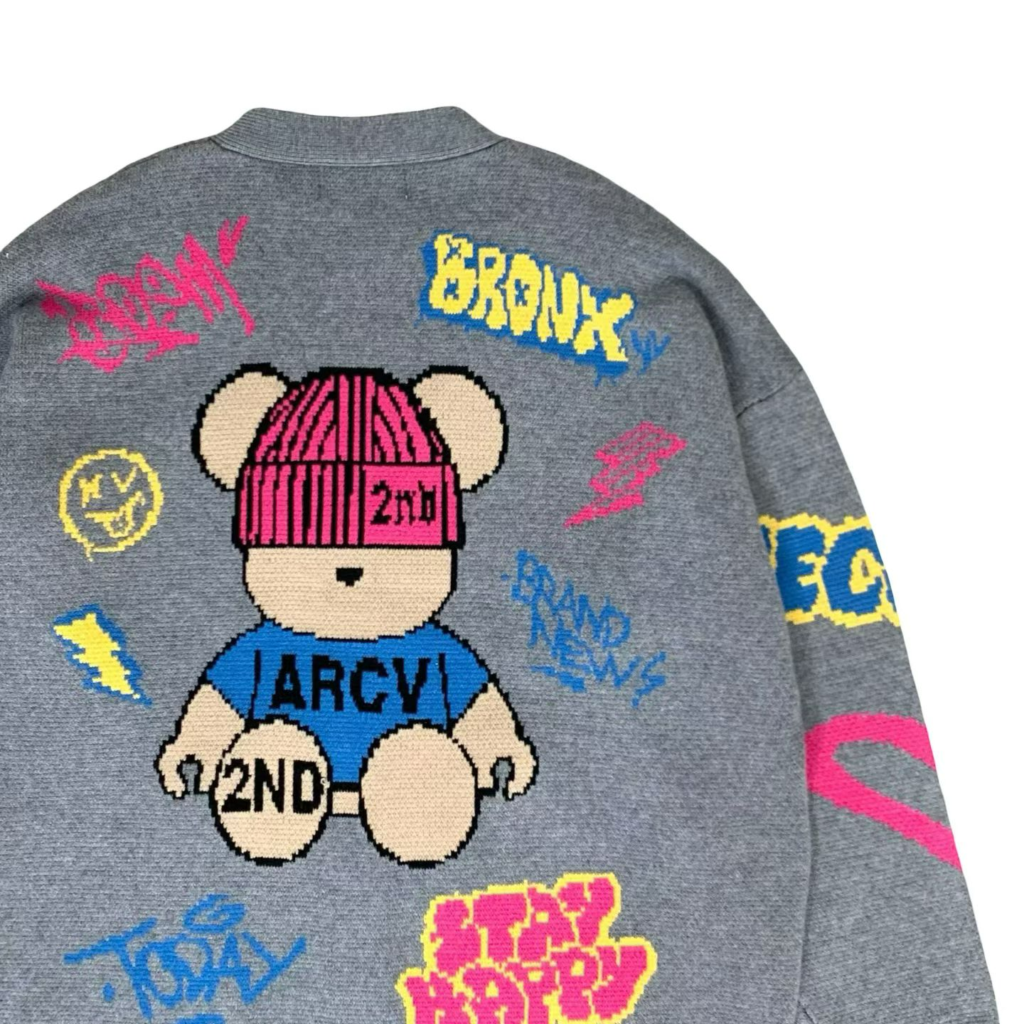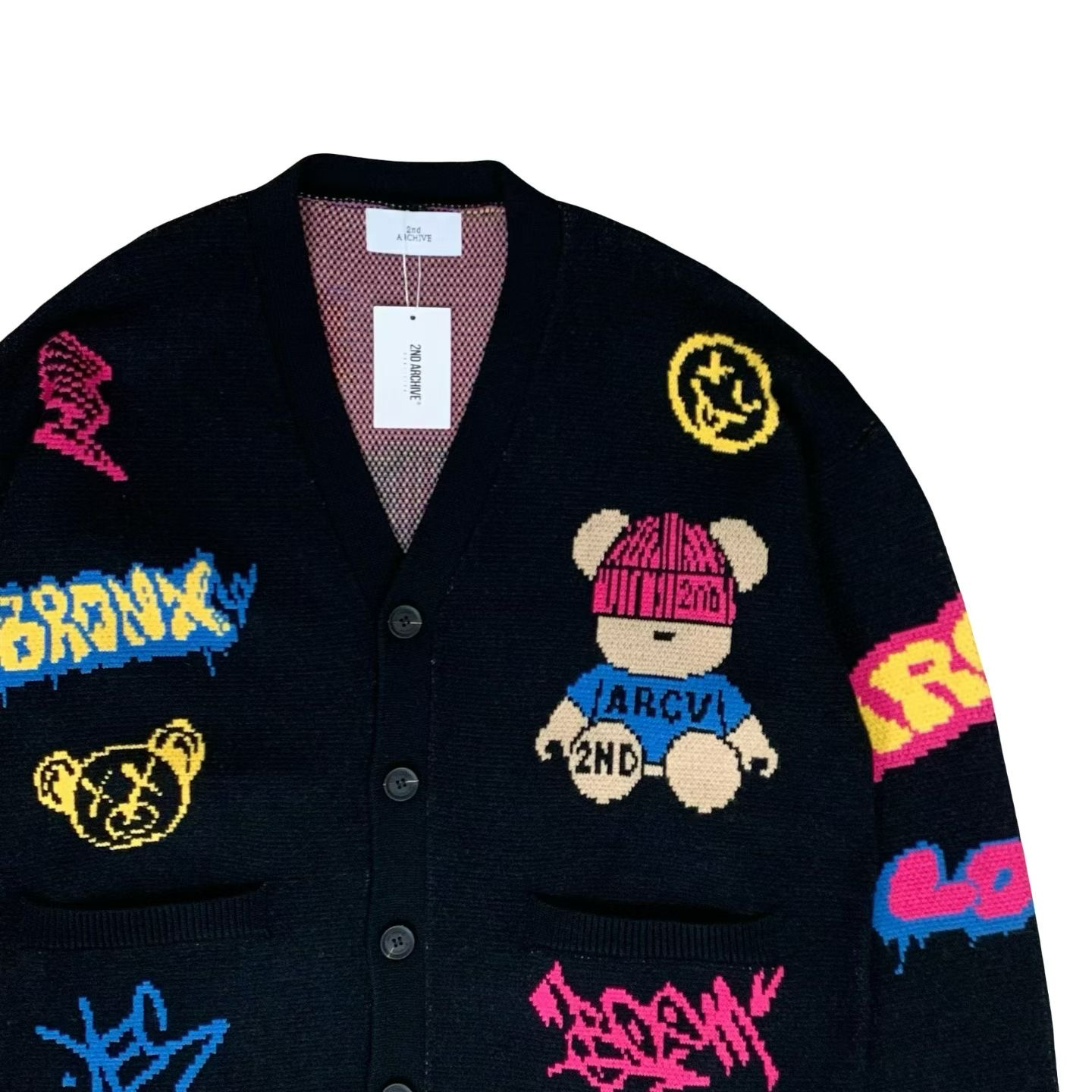 🎨 2ND ARCHIVE Graffiti Bear Cardigan — 毛衣也可以很炸!