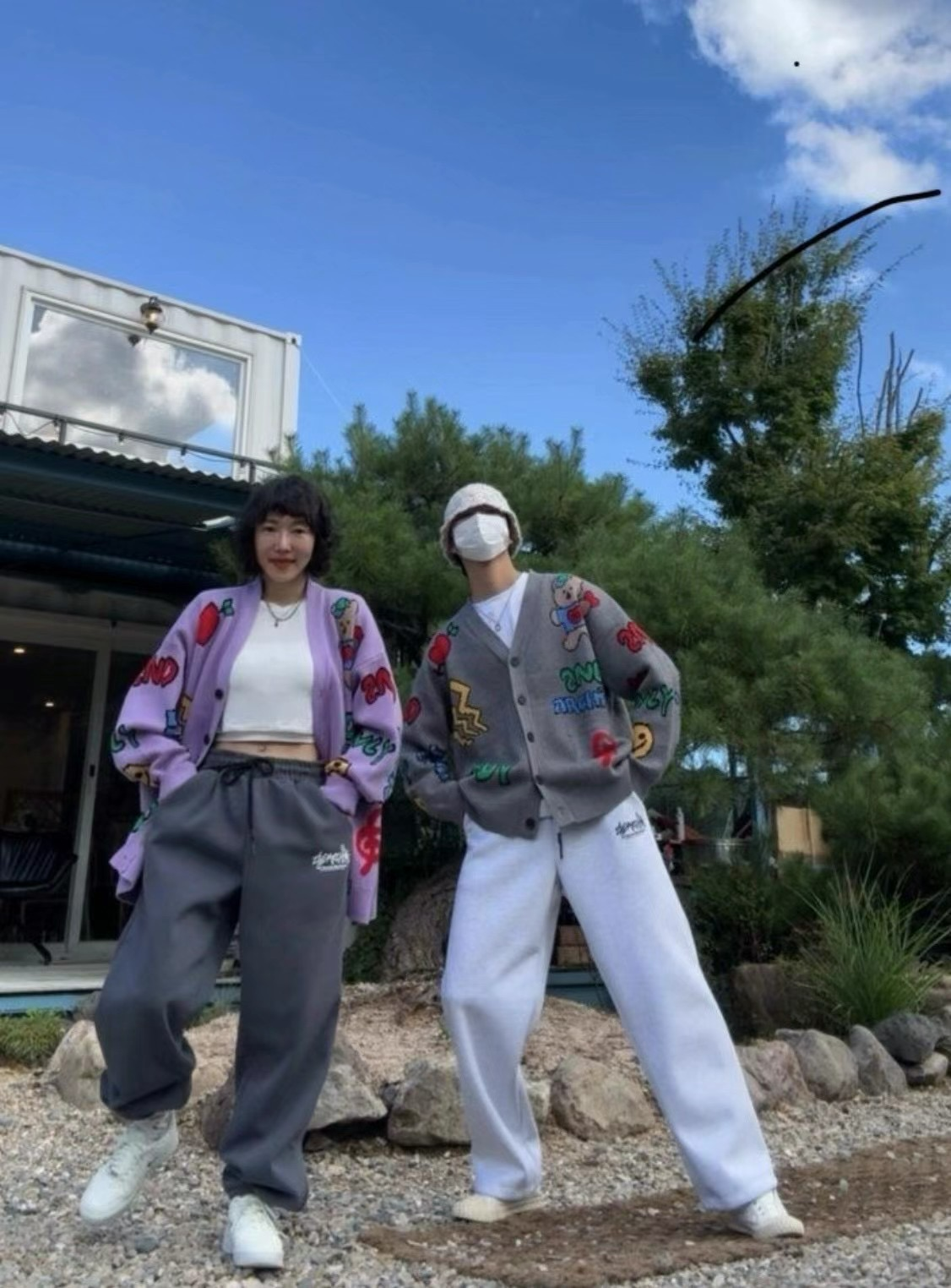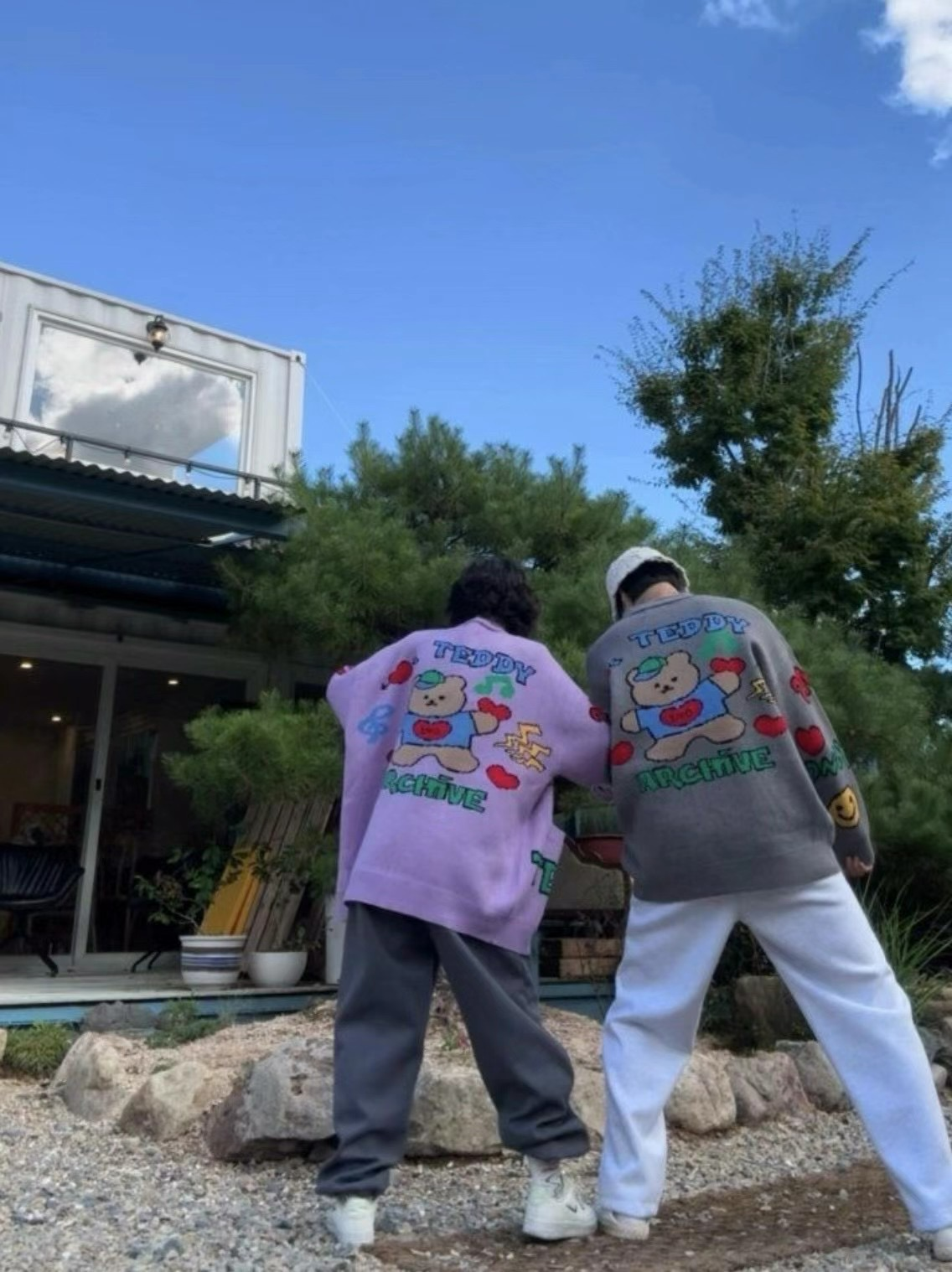 2ND ARCHIVE韓國潮牌 高街泰迪熊愛心排釦針織外套 灰/奶油/紫