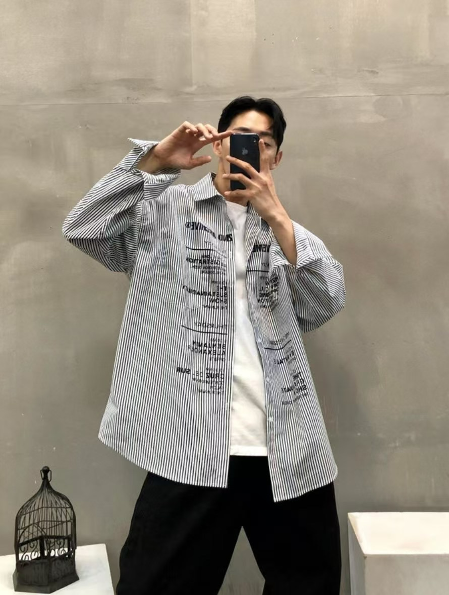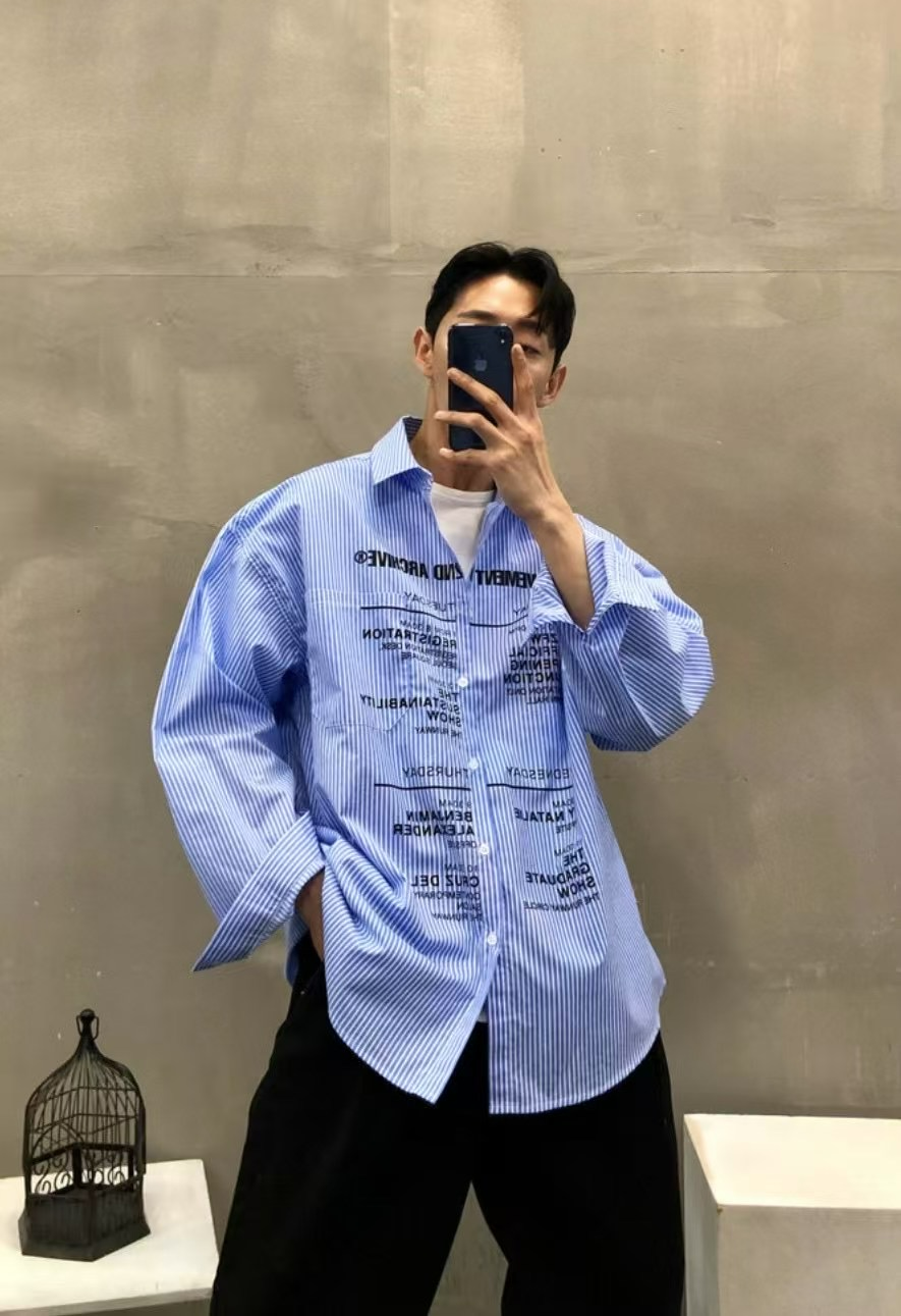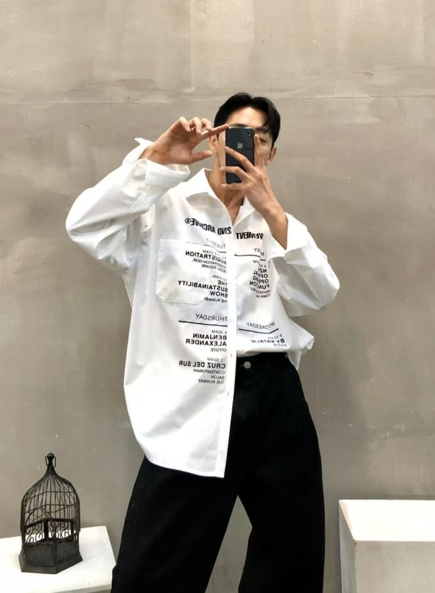 2ND ARCHIVE 正韓行程設計款印花長袖襯衫外套 白/藍/黑 F