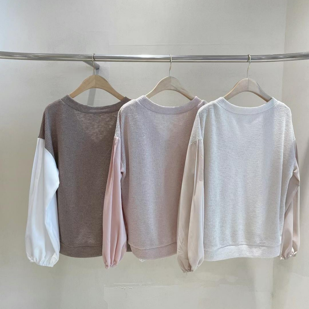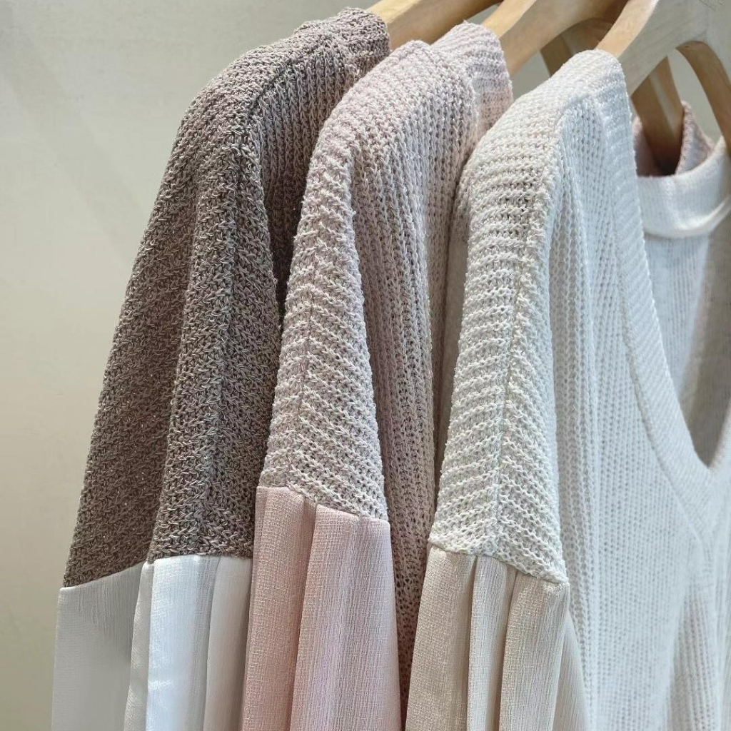 ✔ 上衣針織柔軟,慵懶落肩剪裁好有氛圍感