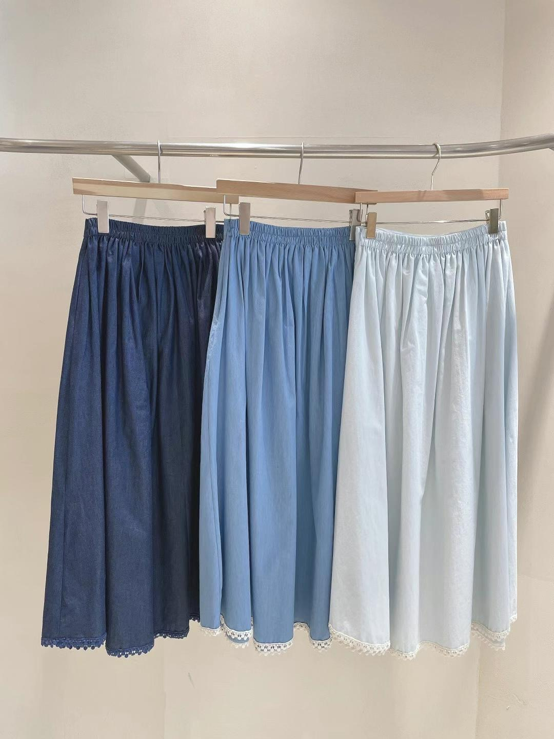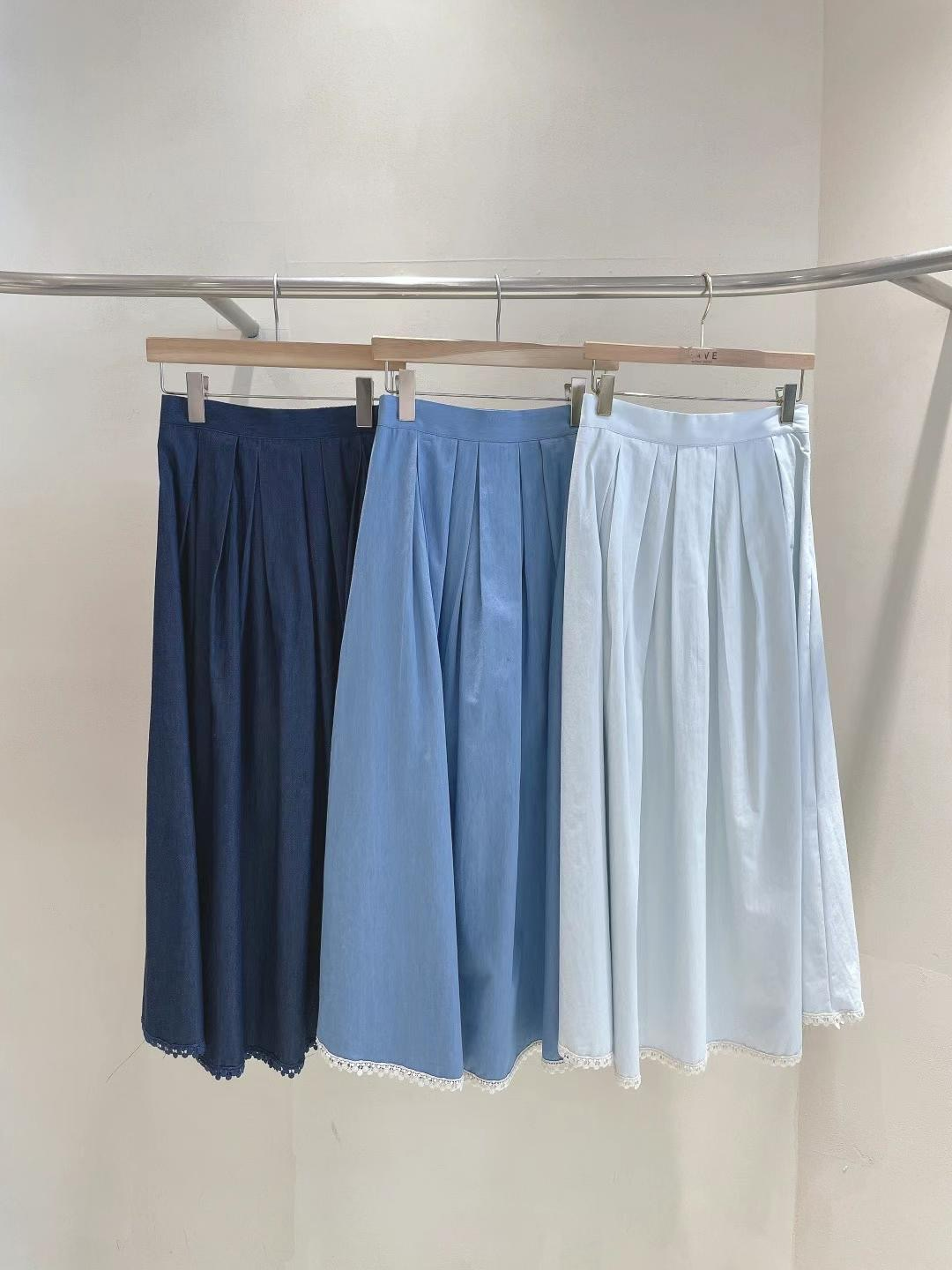 以「溫柔+俐落」為靈感設計,肩膀蕾絲拼接+刺繡英文字母點綴的休閒上衣,搭配高腰壓褶丹寧長裙,拉長比例又超顯瘦。裙擺微微傘狀剪裁,讓每一步都優雅飄逸!不論是通勤日常、下午茶約會,穿上它就是整個季節的氣質代表♡